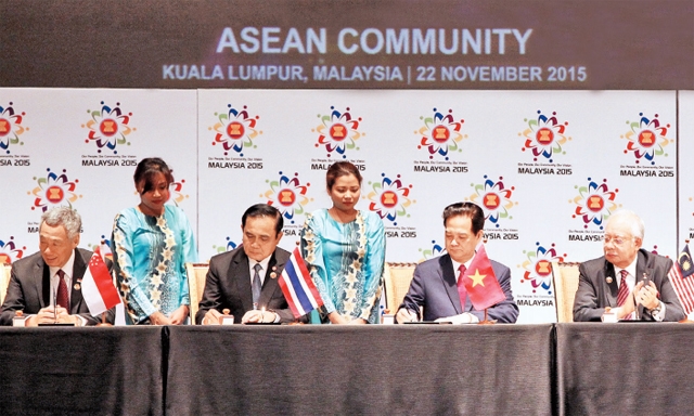 | Thủ tướng Nguyễn Tấn Dũng (thứ hai từ phải sang) dự lễ ký Tuyên bố Kuala Lumpur |