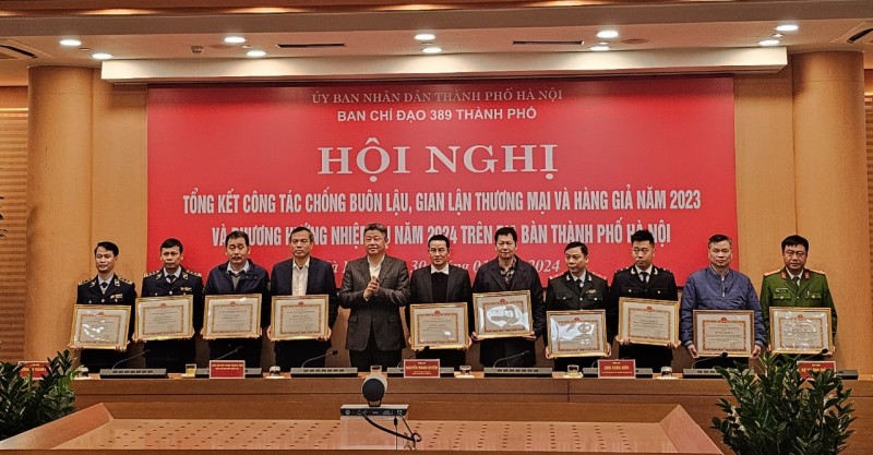 Tại hội nghị, Phó Chủ tịch UBND TP. Hà Nội Nguyễn Mạnh Quyền đã trao tặng Bằng khen của Chủ tịch UBND TP. Hà Nội cho các cá nhân, tập thể đạt thành tích xuất sắc trong công tác chống buôn lậu, gian lận thương mại và hàng giả năm 2023.
