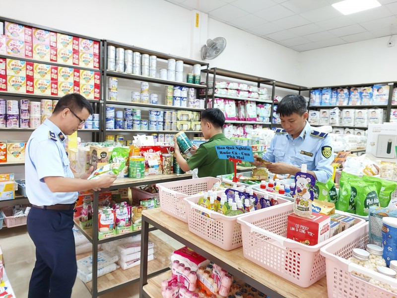| Lực lượng Quản lý thị trường tỉnh Yên Bái kiêm tra hàng hóa tại các hộ kinh doanh |