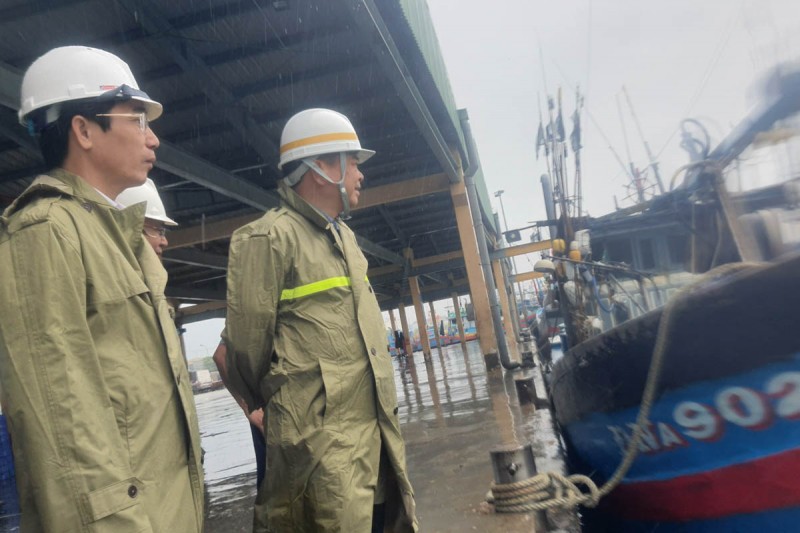 | Phó Trưởng Ban Chỉ đạo về phòng chống thiên tai Nguyễn Hoàng Hiệp kiểm tra công tác ứng phó với áp thấp nhiệt đới tại Cảng cá và Âu thuyền Thọ Quang |