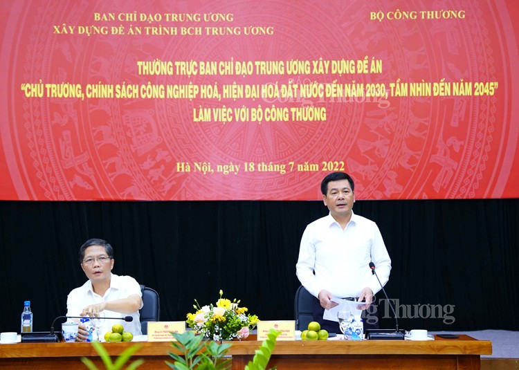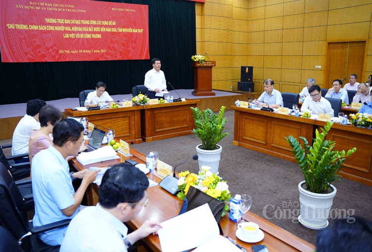 Phát biểu chỉ đạo tại buổi làm việc, đồng chí Trần Tuấn Anh, Ủy viên Bộ Chính trị, Trưởng Ban Kinh tế Trung ương, Trưởng Ban Chỉ đạo xây dựng Đề án nhấn mạnh, Bộ Công Thương là cơ quan đầu tiên Ban Chỉ đạo tới làm việc trực tiếp sau khi có dự thảo 1 của Đề án. Đồng chí đề nghị các đại biểu tập trung thảo luận, cho ý kiến một số vấn đề như: Đánh giá bối cảnh chung trong nước và quốc tế đang tác động đến Việt Nam nói chung và công nghiệp hoá, hiện đại hoá nói riêng; làm rõ mô hình công nghiệp hoá, hiện đại hoá của Việt Nam trong thời gian tới; các thành tố chính trong mục tiêu tổng quát của công nghiệp hoá, hiện đại hoá đất nước đến năm 2030 là gì? Tầm nhìn đến năm 2045 ra sao? Các mục tiêu/chỉ tiêu cụ thể cần nêu trong Nghị quyết tới sẽ thế nào…?