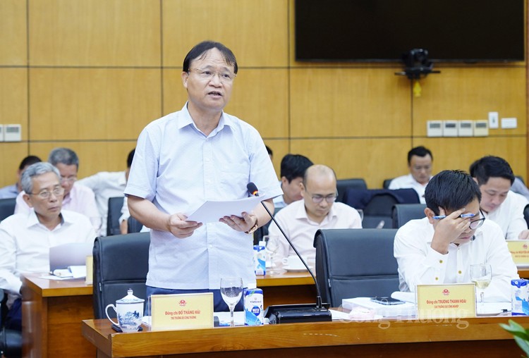 | Thứ trưởng Bộ Công Thương Đỗ Thắng Hải trình bày báo cáo của Bộ Công Thương tại buổi làm việc |