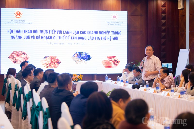 Tại Hội thảo trao đổi trực tiếp với lãnh đạo các doanh nghiệp trong ngành quế và kế hoạch cụ thể để tận dụng các FTA thế hệ mới vừa được tổ chức hôm nay (21/12) tại Quảng Nam, phía các doanh nghiệp, hộ kinh doanh trồng quế đã nêu lên nhiều vấn đề tồn tại của ngành quế hiện nay trong việc kết nối từ cây giống tới việc trồng và chế biến quế; quy trình sản xuất, vốn và công nghệ. Các hạn chế trong việc tìm hiểu các quy định và tiếp cận thị trường xuất khẩu FTA đối với ngành quế; xây dựng thương hiệu và các vấn đề khó khăn khác trong đất đai, hải quan, tín dụng, logistics...