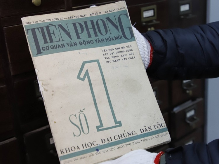 | Bản gốc của Tạp chí Tiên Phong số 1 lưu giữ tại kho quản lý hiện vật thuộc Bảo tàng Lịch sử Quốc gia |