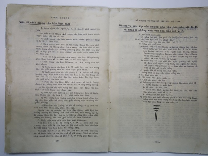 Ngày 10/11/1945, Tạp chí Tiên Phong - Cơ quan Vận động Văn hóa Mới thuộc Hội Văn hóa Cứu quốc Việt Nam ra số 1 với chủ trương “Khoa học, đại chúng, dân tộc”.