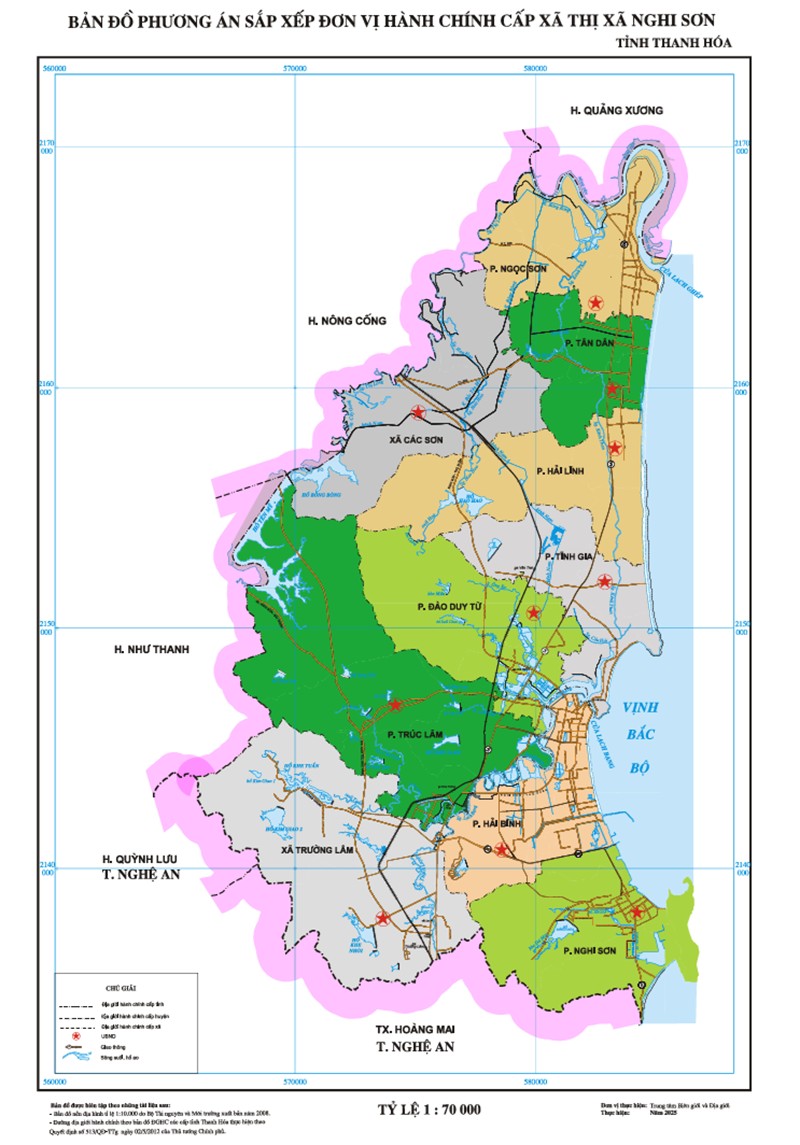 | Bản đồ hành chính đơn vị hành chính cấp xã thị xã Nghi Sơn |