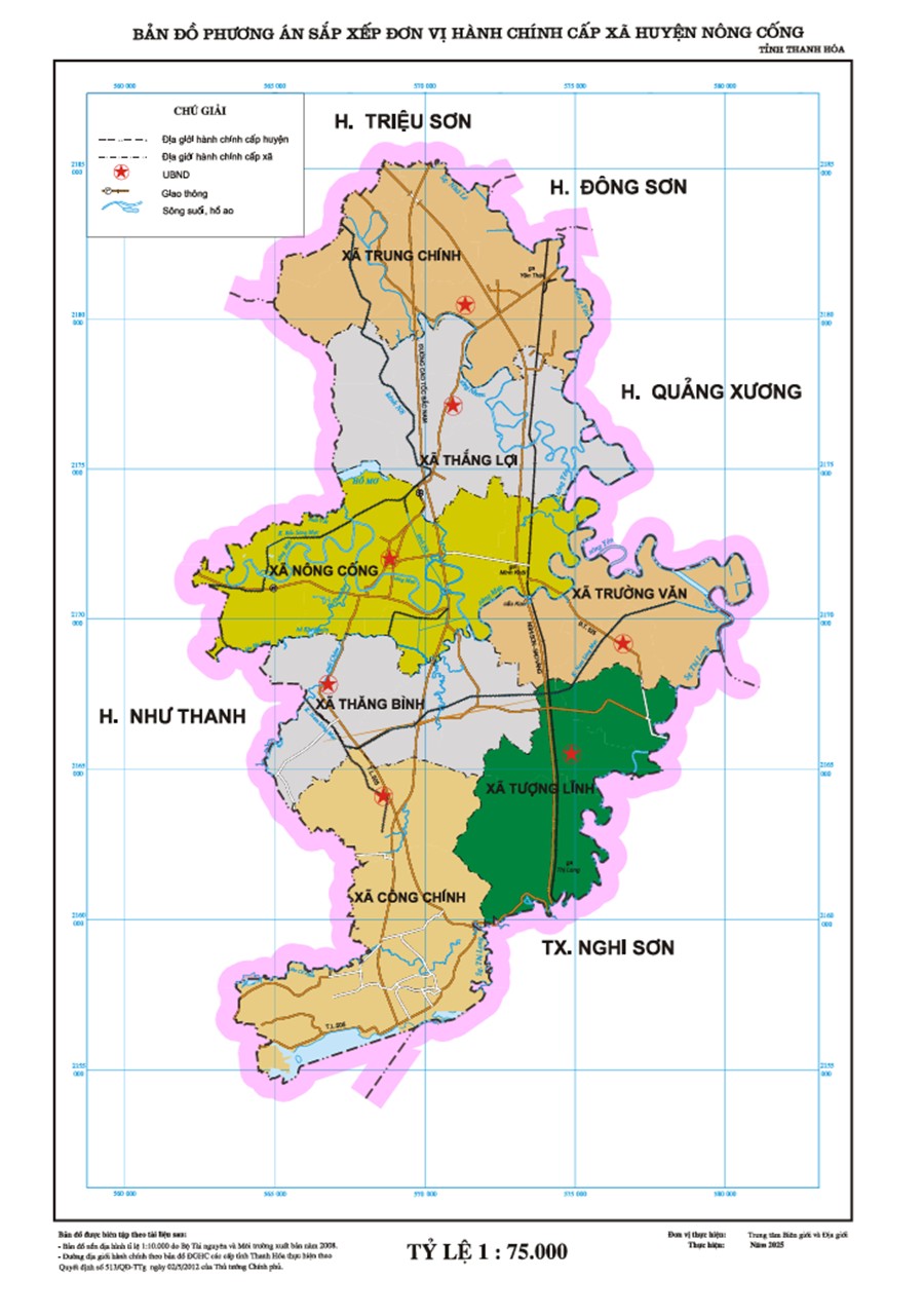 | Bản đồ hành chính đơn vị hành chính cấp xã huyện Nông Cống |
