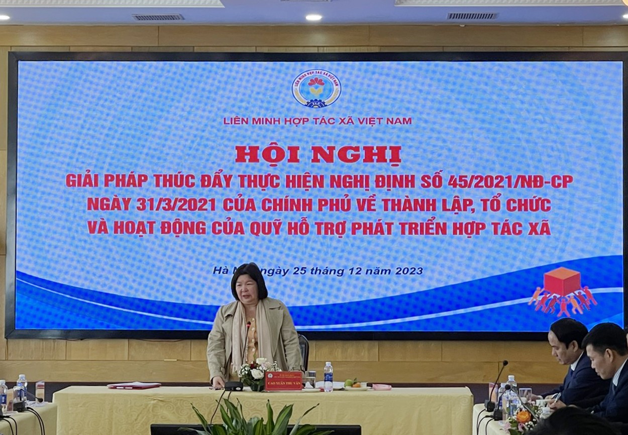 Trước những khó khăn, vướng mắc mà các địa phương nêu lên, Chủ tịch Liên minh hợp tác xã Việt Nam Cao Xuân Thu Vân đã ghi nhận và tiếp thu các kiến nghị, đề xuất này. Đồng thời, khẳng định, Nghị định định 45 có ý nghĩa rất quan trọng cho sự phát triển, lớn mạnh và hiệu quả của Quỹ Hỗ trợ phát triển hợp tác xã. Vì vậy, đề nghị các địa phương cần chủ động, quyết liệt trong các khâu để thành lập, tổ chức hoạt động của Quỹ Hỗ trợ phát triển hợp tác xã; tham mưu cấp ủy, chính quyền bổ sung đủ vốn điều lệ cho quỹ hoạt động.