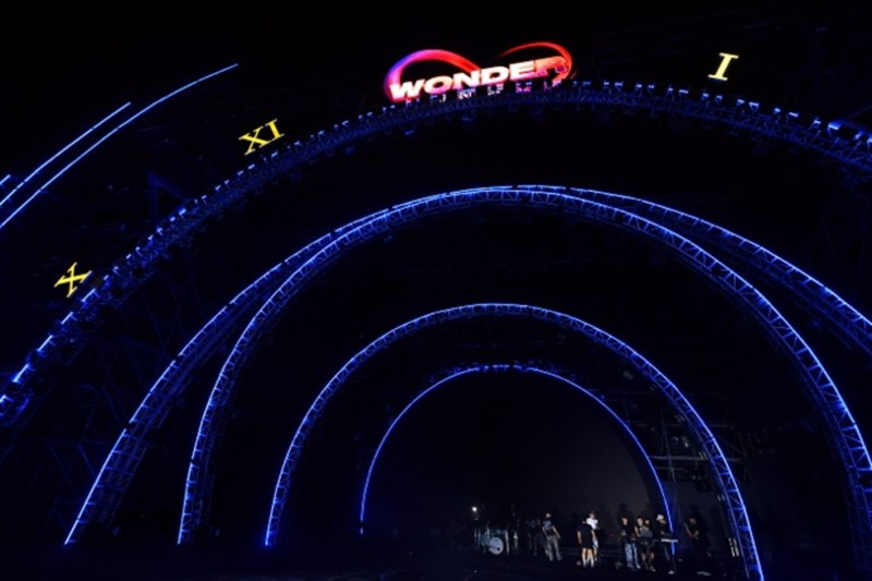 Ngay từ tối 14/12, sân khấu “Hỗn thiên cầu” hình đồng hồ cổ khổng lồ của 8Wonder được kiểm tra ánh sáng lần đầu tiên, khoe vẻ đẹp lộng lẫy hoàn hảo, sẵn sàng cho “chuyến du hành thời gian” của hàng chục nghìn du khách với âm nhạc bất hủ của Maroon 5. Những bước cuối cùng cũng đang được gấp rút hoàn thiện để sẵn sàng chào đón “biểu tượng âm nhạc toàn cầu” và những nghệ sĩ đình đám của Vbiz.
