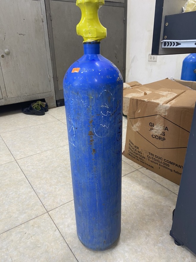 Qua kiểm tra, lực lượng chức năng phát hiện tại giá treo đồ trên xe có 1 bình kim loại màu xanh cao khoảng 80cm, đường kính khoảng 15cm có van bằng kim loại bọc nilon màu vàng.