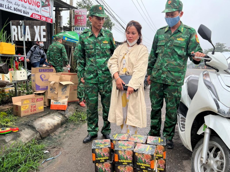 Theo đó, vào lúc 5 giờ 15 phút ngày 19/10, Đồn Biên phòng Thuận, Đội Trinh sát đặc nhiệm, Bộ đội biên phòng Quảng Trị phối hợp với Công an huyện Hướng Hóa bắt quả tang đối tượng Nguyễn Thị Hồng Ánh, sinh năm 1986, trú tại thôn Tân Sơn, xã Tân Lập, huyện Hướng Hóa đang vận chuyển pháo hoa nổ bằng xe máy, tại Km 74+650 Quốc lộ 9, thuộc thôn Long Hợp, xã Tân Long, huyện Hướng Hóa, tỉnh Quảng Trị. Qua kiểm tra, tổ công tác thu giữ 20 hộp pháo loại 36 ống có trọng lượng 28kg.