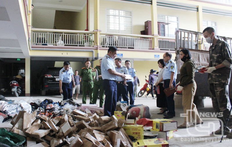 Trong cuộc họp chiều 19/10, Hội đồng tiêu hủy đã thống nhất hình thức, các biện pháp và giám sát quá trình tiêu hủy tang vật bị tịch thu do vi phạm hành chính. Số tang vật bị tiêu hủy gồm: 737 bộ/chiếc quần áo; 523 đôi giày, dép; 20 chăn trải giường trẻ em; 3 điện thoại di động; 450 thanh kim loại; 360 máy uốn tóc; 100 chảo điện; 15 sạc điện thoại, 15 tai nghe bluetooth; 35 kính mắt; 38 chiếc đồng hồ; 60 mũ nhựa thời trang; 29 ổ khóa; 10 quạt trần mini; 7 máy xay; 10 ấm siêu tốc; 5 đèn led.