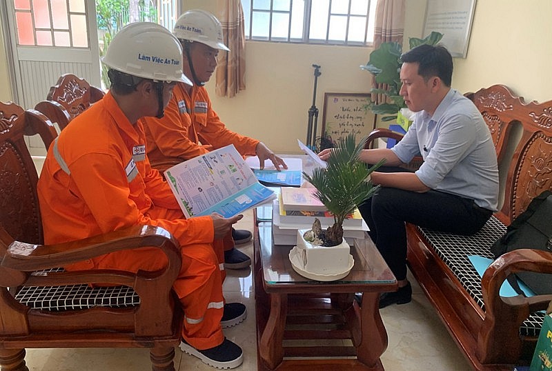 | Nhân viên ngành điện miền Nam tuyên truyền người dân sử dụng điện tiết kiệm |