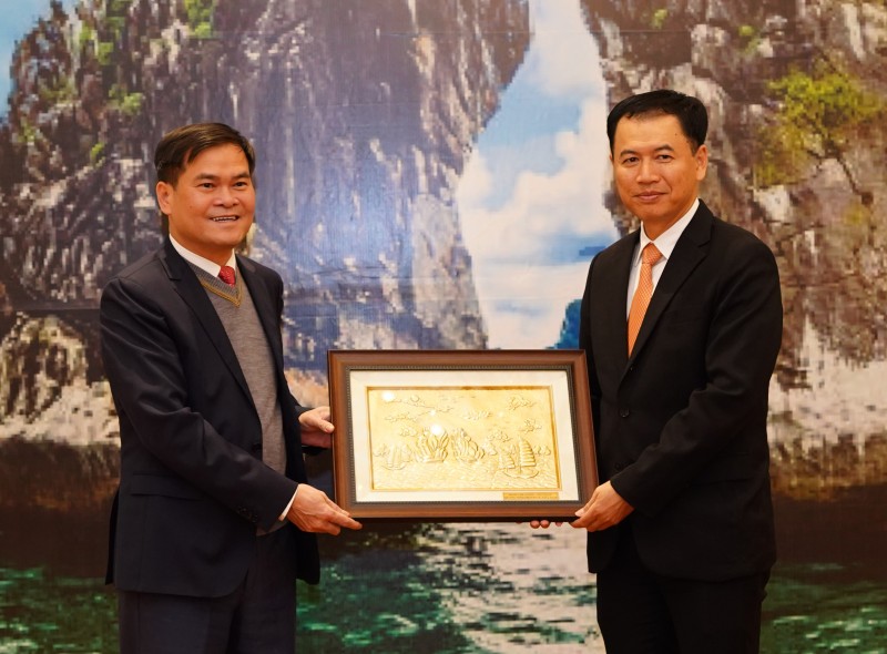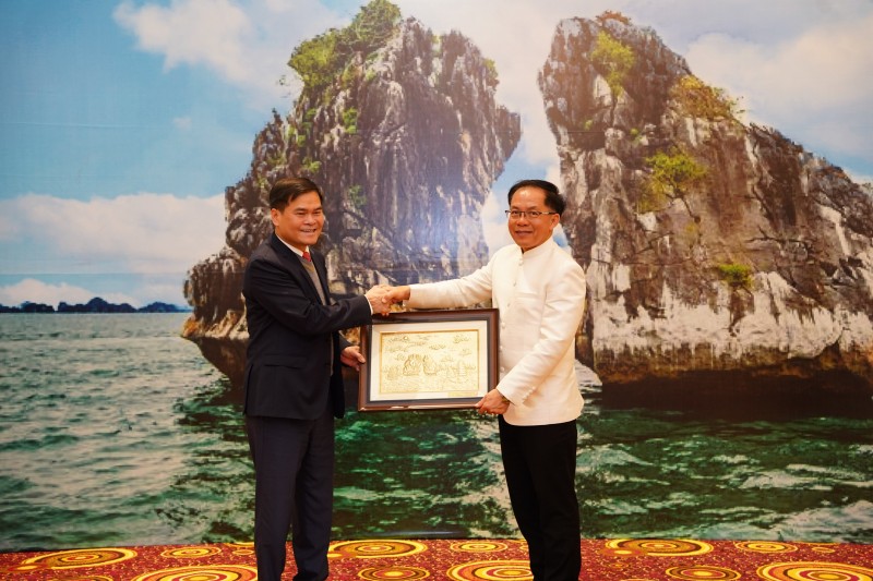 | Lãnh đạo tỉnh Quảng Ninh tặng quà lưu niệm Bộ trưởng Bộ Năng lượng và Mỏ Lào |