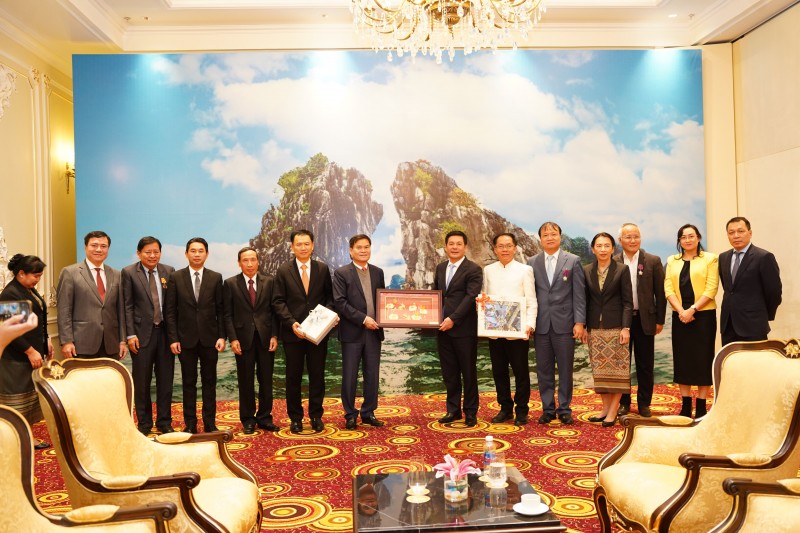 | Lãnh đạo tỉnh Quảng Ninh tặng quà lưu niệm tới Bộ trưởng Bộ Công Thương Lào |
