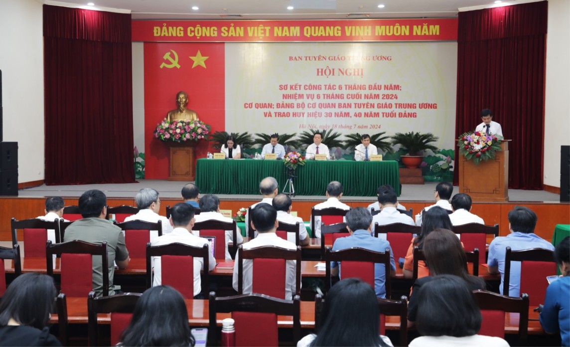 Báo cáo công tác tuyên giáo 6 tháng đầu năm 2024, đồng chí Phan Xuân Thủy, Phó Trưởng ban Tuyên giáo Trung ương cho biết, trong bối cảnh có nhiều khó khăn, thách thức, với sự quan tâm chỉ đạo quyết liệt của Trung ương, trực tiếp là Bộ Chính trị, Ban Bí thư, sự phối hợp, hỗ trợ của các ban, bộ, ngành, sự chỉ đạo sát sao, quyết liệt của Lãnh đạo Ban, sự đoàn kết, nỗ lực của toàn thể cán bộ, công chức, toàn Ban đã triển khai và hoàn thành một khối lượng lớn công việc với nhiều điểm mới, nổi bật.