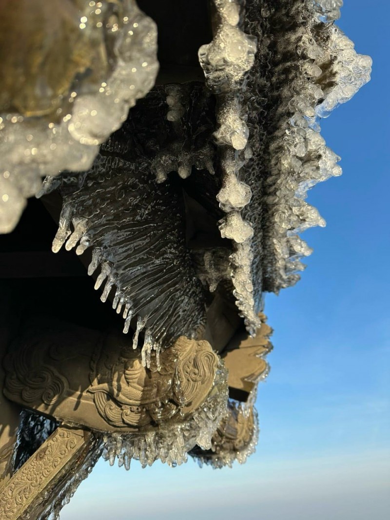 Theo ghi nhận, vào khoảng 8 giờ ngày 23/12, băng giá xuất hiện trên chùa Đồng, Yên Tử (TP. Uông Bí, tỉnh Quảng Ninh). Băng giá phủ một lớp mỏng trên mái chùa Đồng, đỉnh non thiêng Yên Tử.