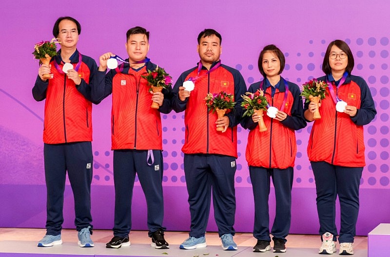 Tối ngày thi đấu ngày 1/10, các vận động viên Lại Lý Huynh, Nguyễn Thành Bảo, Nguyễn Hoàng Yến mang tin vui cho Đoàn thể thao Việt Nam, khi giành tấm huy chương bạc ở nội dung đồng đội hỗn hợp nam nữ - môn Cờ tướng.