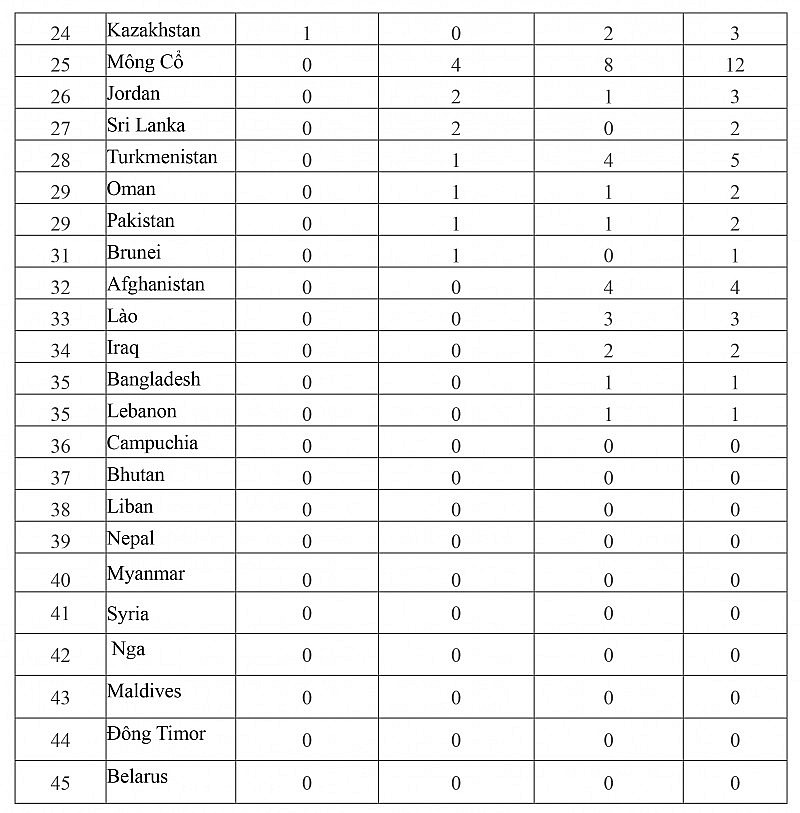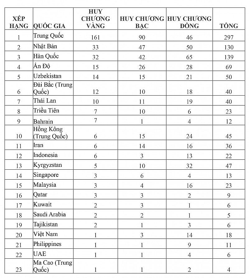Cập nhật liên tục, đầy đủ và chính xác Bảng tổng sắp huy chương Đại hội thể thao châu Á lần thứ 19 - Asiad 19.