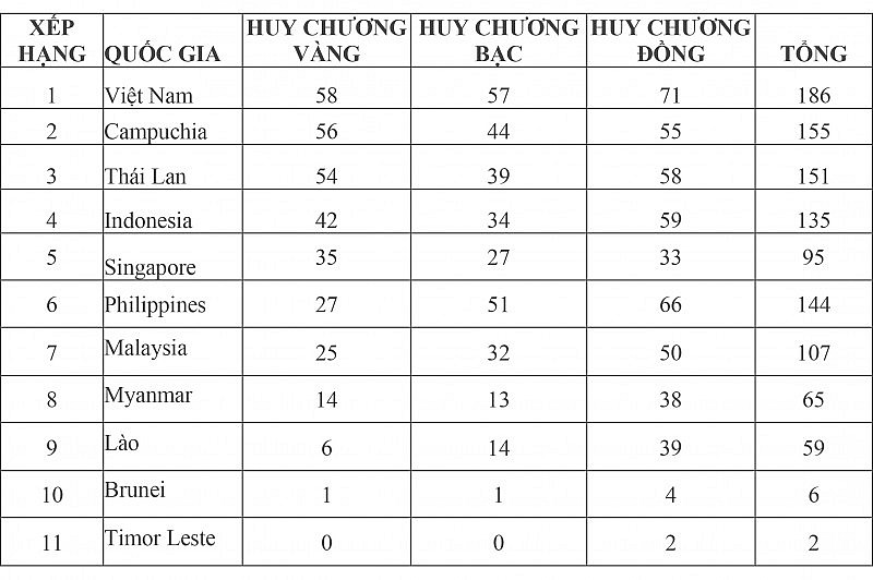 BẢNG TỔNG SẮP HUY CHƯƠNG SEA GAMES 32 – NGÀY 12/5: