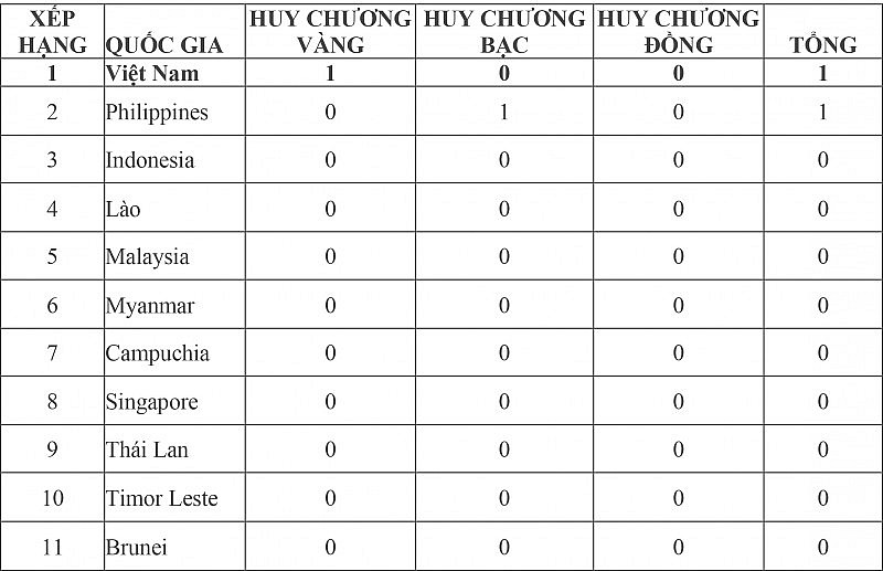 BẢNG TỔNG SẮP HUY CHƯƠNG SEA GAMES 32 – NGÀY 3/5: