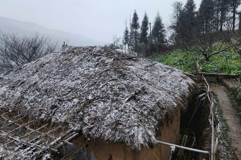 | Tuyết rơi phủ trắng mái nhà của người dân. (Ảnh: Nguyễn Hải) |