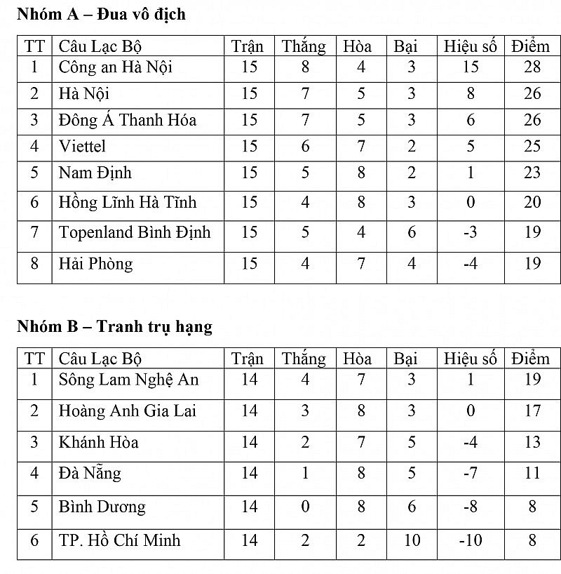 Bảng xếp hạng V-League 2023 hôm nay:
