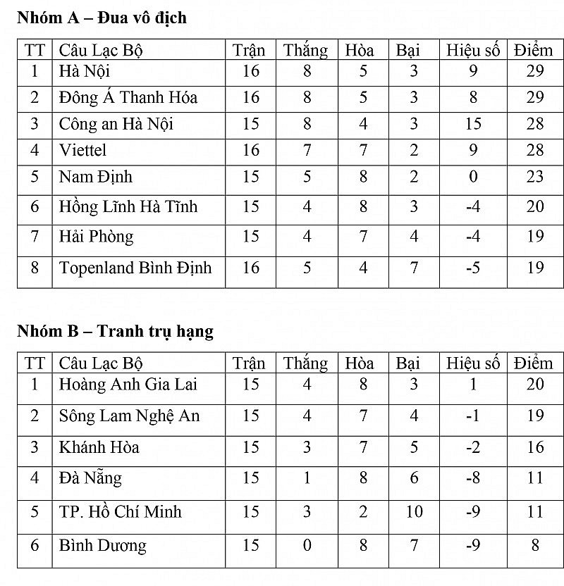 Giành chiến thắng 1-0 trước đội khách Nam Định trong khuôn khổ vòng 3 Giai đoạn 2 V-League 2023 tối ngày 28/7, Hà Nội có cùng 29 điểm với Thanh Hóa nhưng tạm thời chiếm vị trí đầu bảng từ đội bóng xứ Thanh, do hơn hiệu số bàn thắng bại. Qua đó, tiếp tục là ứng cử viên sáng giá trong cuộc đua tranh ngôi vô địch V-League 2023.