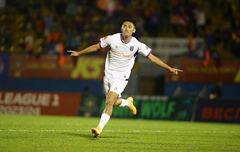 Việt Cường mở tỷ số cho Bình Dương trong trận gặp Hải Phong trên sân Gò Đậu (Ảnh: Quốc An)