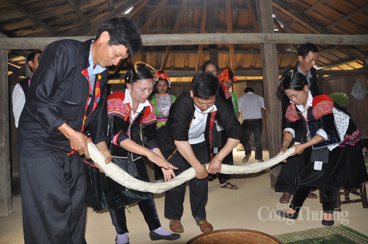 Cứ mỗi dịp Tết đến xuân về, bà con đồng bào dân tộc Mông lại tấp nập, quây quần bên chiếc cối, chày để tạo ra những chiếc bánh dày xinh xắn, tròn trịa. Để món bánh dày ngon như ý đều phải có đủ các vật dụng cần thiết như: Cối giã bánh làm bằng thân cây gỗ trắc, thớ mịn, có mùi thơm và khoét rỗng ruột; Chày giã bánh cũng được làm bằng các loại gỗ cứng và nặng; Vừng rang sẵn và lòng đỏ trứng gà đã được luộc chín để xoa tay và xoa các dụng cụ nặn bánh không bị dính.