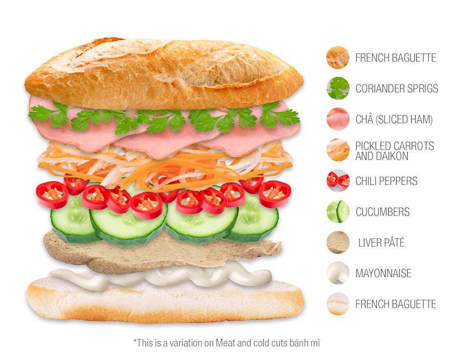 Sự kết hợp giữa các nguyên liệu làm nên chiếc bánh mì thơm ngon. Ảnh: Taste Atlas