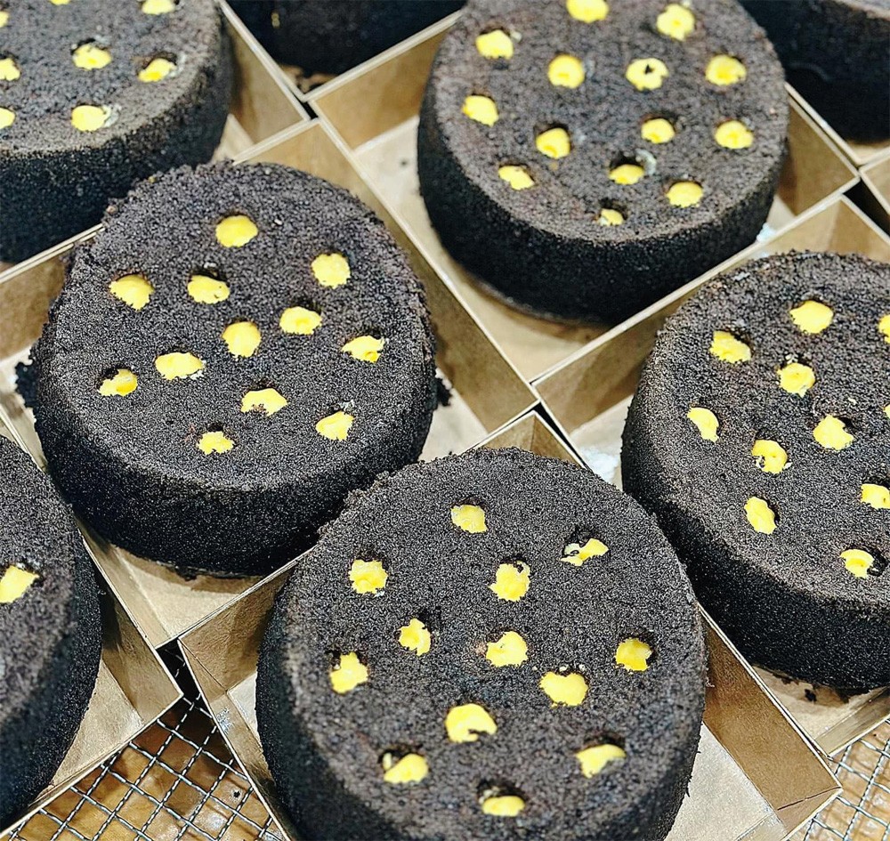 | Ảnh chụp bánh than tổ ong - những chiếc bánh được làm từ nhiều nguyên liệu, trong đó có bột tinh than tre. (Ảnh từ mạng xã hội) |