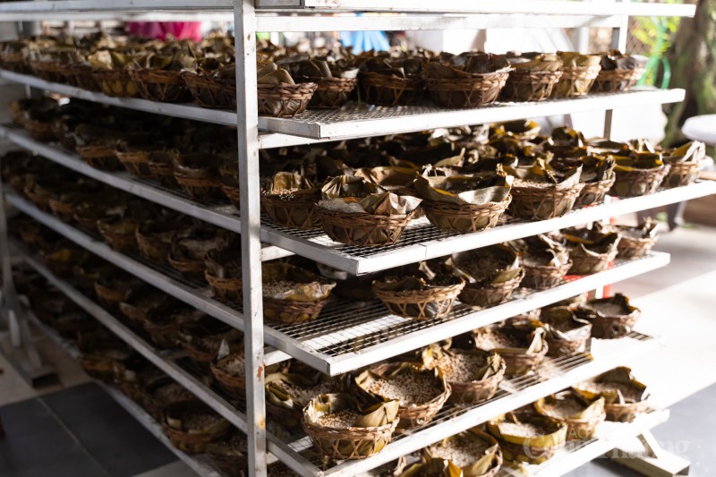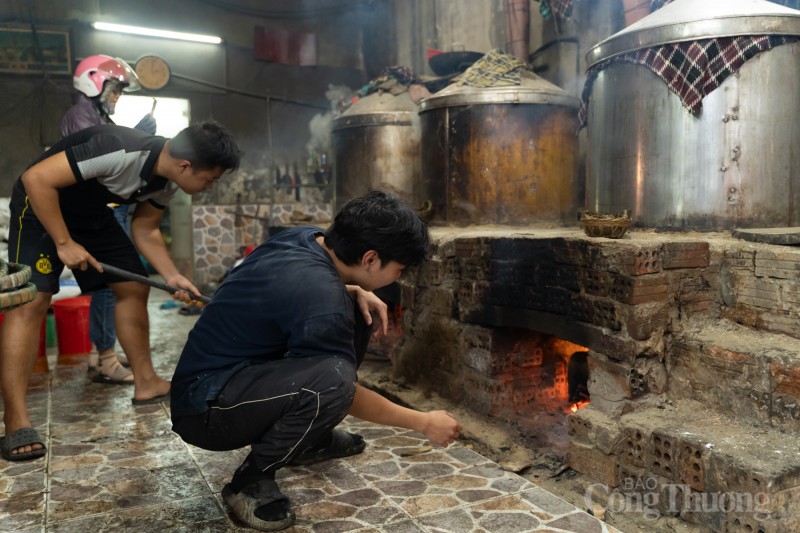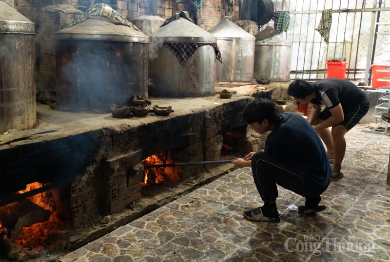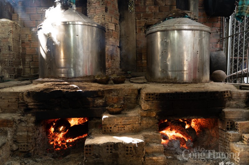 | Các lò bánh đỏ lửa suốt ngày đêm. Sau khi hấp khoảng 4 tiếng, người nấu sẽ đưa bánh tổ ra khỏi nồi. |