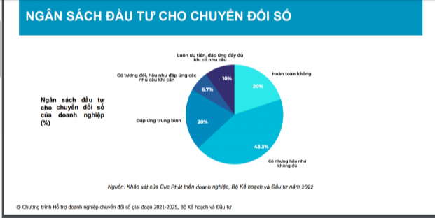 Cụ thể, năm 2020, Thủ tướng Chính phủ đã ban hành Quyết định số 749/QĐ-TTg phê duyệt “Chương trình chuyển đổi số quốc gia đến năm 2025, định hướng đến năm 2030”. Cùng với đó, Bộ Kế hoạch và Đầu tư vào tháng 1/2021 cũng ban hành Quyết định số 12/QĐ-BKHĐT về phê duyệt Chương trình hỗ trợ doanh nghiệp chuyển đổi số giai đoạn 2021-2025.