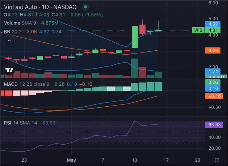 Theo Benzinga, từ góc độ kỹ thuật, cổ phiếu VFS đang cho thấy xu hướng tăng giá, trong cả ngắn hạn và dài hạn.