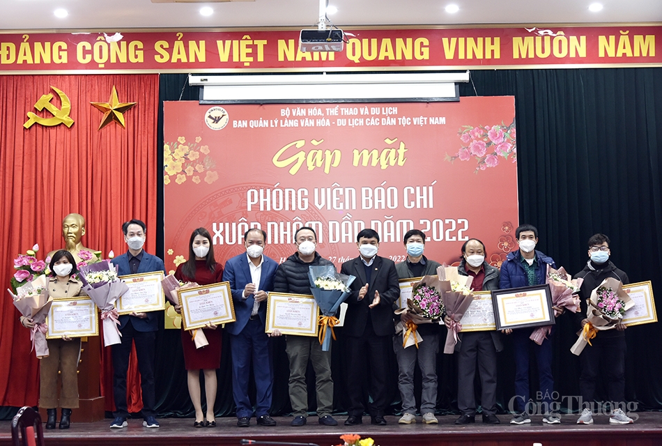 Tại buổi gặp mặt, Ban Quản lý Làng Văn hóa đã tặng giấy khen cho các phóng viên có thành tích xuất sắc trong công tác tuyên truyền các hoạt động tại Làng Văn hóa năm 2021. Với hàng chục bài viết về các hoạt động, sự kiện văn hoá, lễ hội của đồng bào các dân tộc tại Làng Văn hoá trong năm qua, nhà báo Phạm Tiệp, phóng viên Báo Công Thương lần thứ 2 liên tiếp nhận được giấy khen Ban Quản lý Làng Văn hóa.