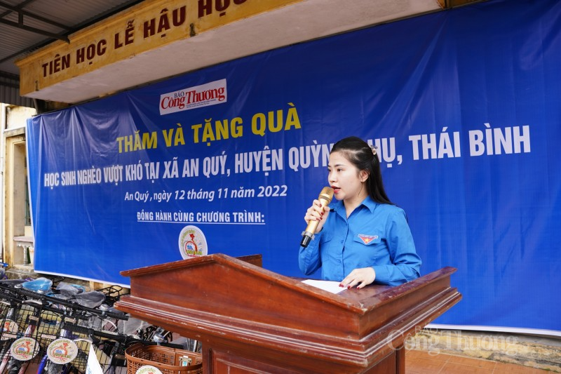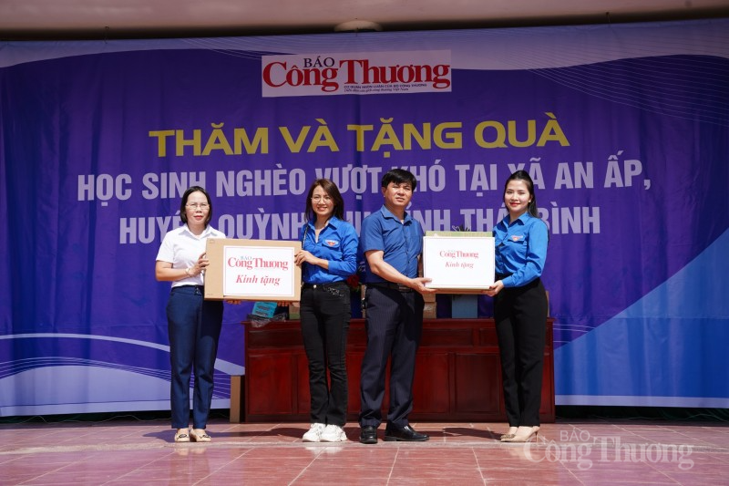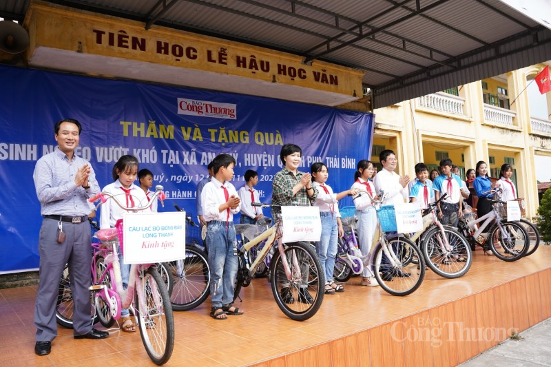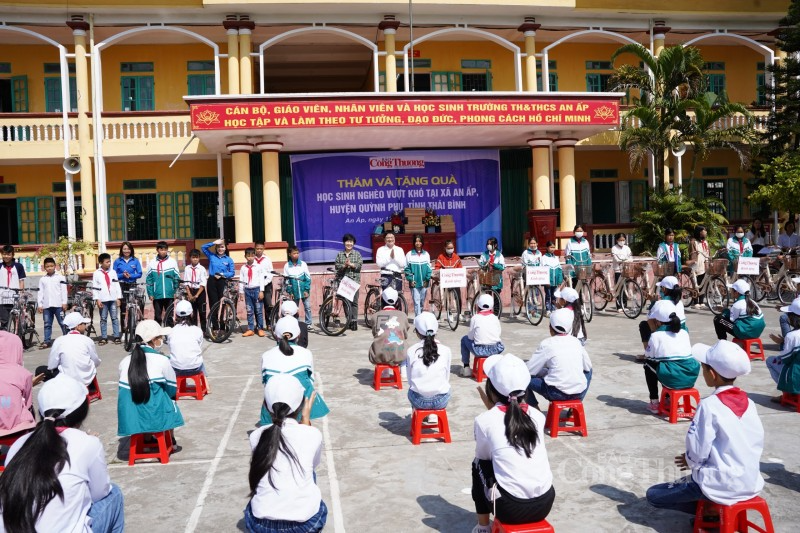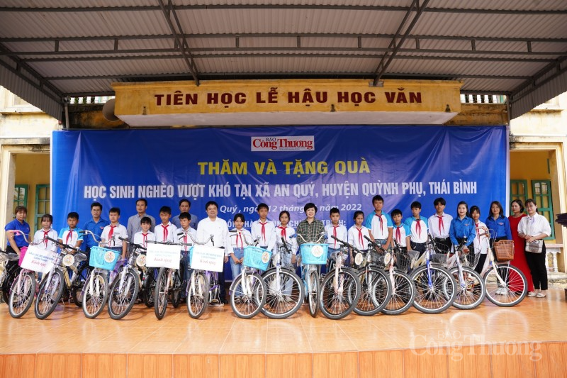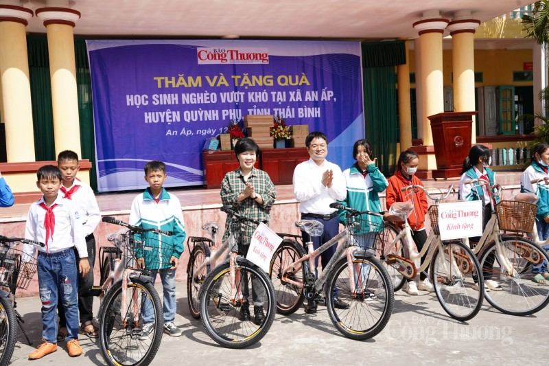 Chương trình từ thiện của Báo Công Thương diễn ra trong 2 ngày 12-13/11. Đoàn công tác của Báo Công Thương cùng sự đồng hành của câu lạc bộ bóng bàn Long Thành đã tới thăm và tặng nhiều phần quà là máy tính và xe đạp cho các em học sinh có hoàn cảnh khó khăn, học sinh nghèo vượt khó trên địa bàn xã An Ấp và xã An Quý, huyện Quỳnh Phụ - quê hương “5 tấn” còn nhiều khó khăn nhưng luôn có tinh thần hiếu học đáng quý.