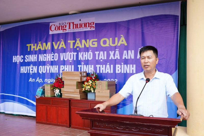 Tại chương trình thăm và tặng quà cho các em học sinh có hoàn cảnh khó khăn, học sinh nghèo vượt khó trường Tiểu học và Trung học Cơ sở An Ấp, huyện Quỳnh Phụ, đồng chí Nguyễn Văn Minh - Phó Tổng biên tập Báo Công thương phát biểu bày tỏ sự xúc động khi được chứng kiến sự đổi thay của nhà trường nơi quê lúa.