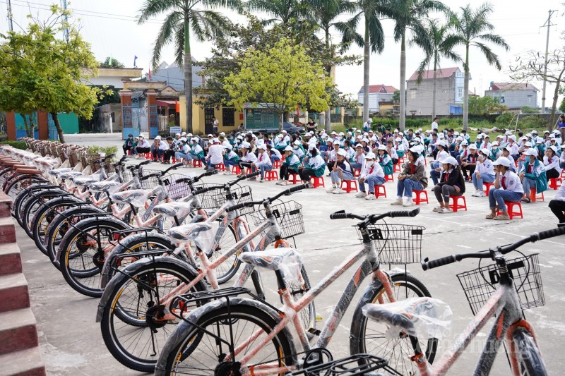 | Nhiều phần quà là máy tính và xe đạp đã được Đoàn công tác trao cho các em học sinh có hoàn cảnh khó khăn, học sinh nghèo vượt khó trên địa bàn xã An Ấp và xã An Quý, huyện Quỳnh Phụ. |