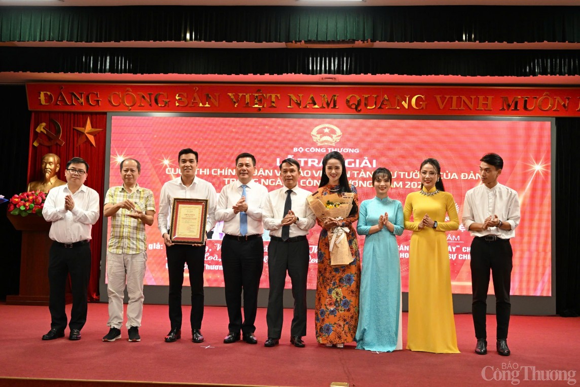 | Bộ trưởng Nguyễn Hồng Diên cùng Thứ trưởng Bộ Công Thương Trương Thanh Hoài và Phó Chủ tịch Thường trực Hội Nhà báo Việt Nam Nguyễn Đức Lợi trao chứng nhận cho nhóm tác giả Báo Công Thương đoạt giải Đặc biệt |