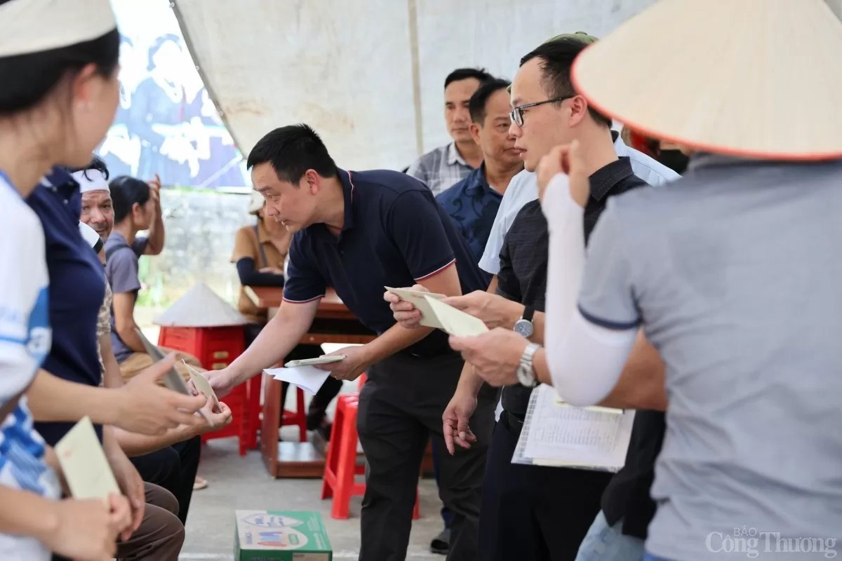 | Đoàn công tác Báo Công Thương hỗ trợ các hộ gia đình có nạn nhân tử vong tại thôn Làng Át, huyện Lục Yên, tỉnh Yên Bái. |
