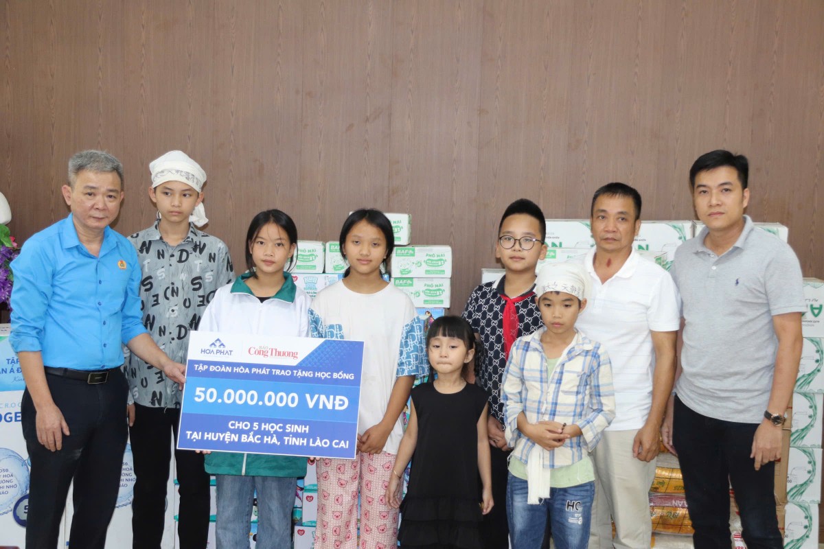 Trong chuyến thăm về vùng rốn lũ, đoàn công tác Báo Công Thương cũng trao hàng trăm triệu đồng và hàng trăm suất quà cho các học sinh, gia đình có hoàn cảnh khó khăn của huyện Bắc Hà.