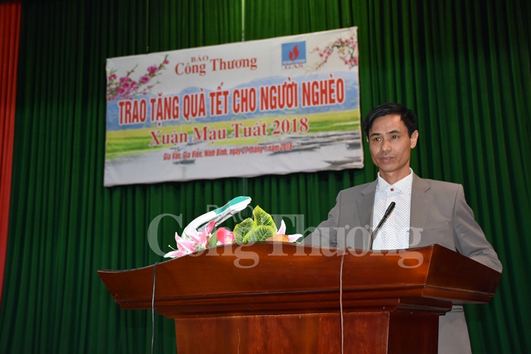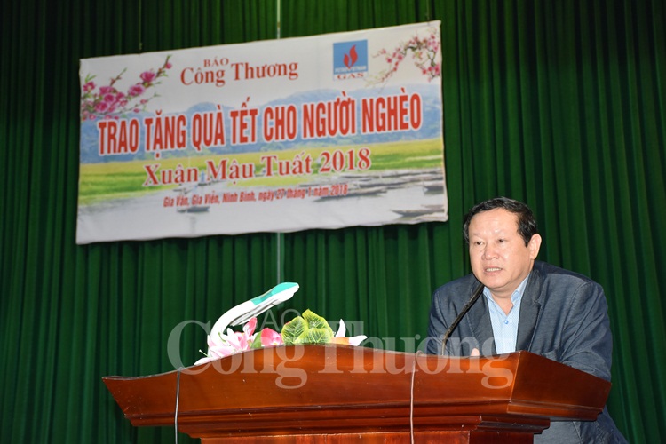 | Tổng biên tập Báo Công Thương Nguyễn Hữu Qúy phát biểu tại buổi trao tặng quà từ thiện |