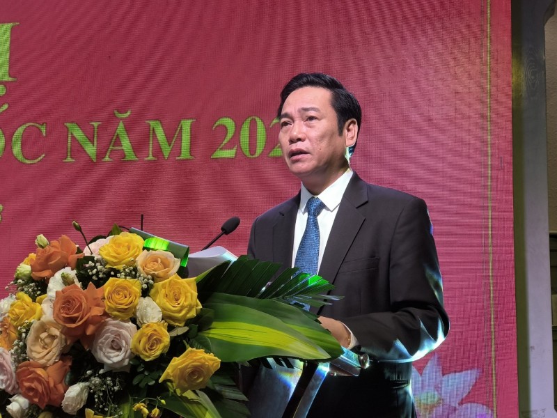 | Tổng Biên tập Báo điện tử Đảng Cộng sản Việt Nam Nguyễn Công Dũng báo cáo tại Hội nghị |