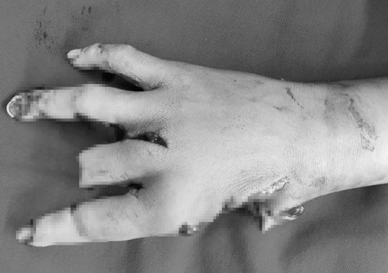 | Bàn tay bé trai bị dập nát nghiêm trọng |