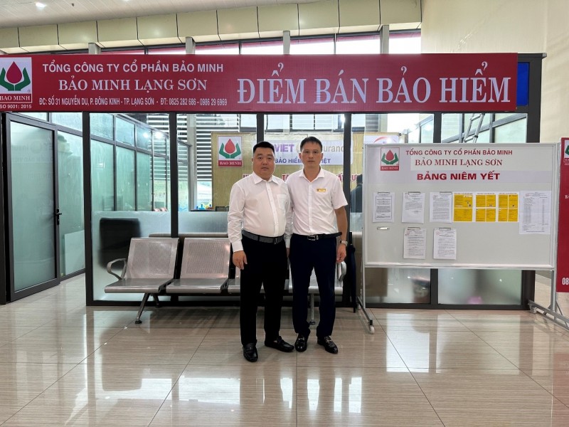 | Ông Vũ Anh Tuấn – Bí Thư Đảng ủy, thành viên Hội đồng Quản trị, Tổng Giám đốc - Tổng công ty Cổ phần Bảo Minh (Bảo Minh) cùng ông Đoàn Anh Đông – Giám đốc Công ty Bảo Minh Lạng Sơn tại điểm bán bảo hiểm cửa khẩu Hữu Nghị |