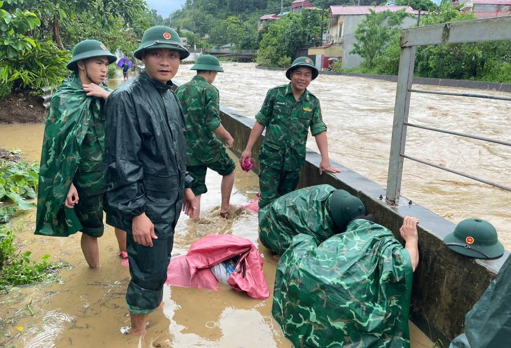 Đồng thời, phối hợp với địa phương, lực lượng chức năng ứng phó bão số 3, di dời 594 hộ/1.506 khẩu tại các địa phương: Lạng Sơn, Quảng Ninh, Hải Phòng, Thanh Hóa và Thái Bình; hỗ trợ 22 người dân vào đơn vị trú tránh (Ninh Bình). Chằng chống 232 nhà dân (Quảng Ninh, Hải Phòng, Thái Bình, Thanh Hóa), chằng buộc 107 lồng bè, cứu vớt 10 ngư dân tại khu vực hang Ma, Vịnh Hạ Long (Quảng Ninh).
