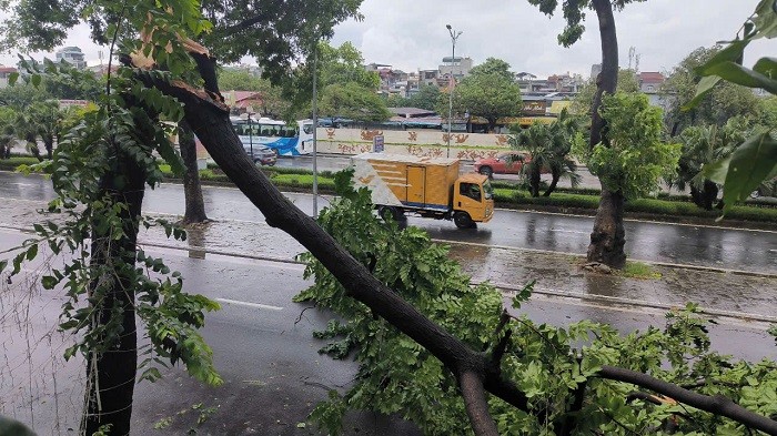 | Hà Nội ghi nhận hàng trăm cây đổ, cành gãy do bão số 3. Ảnh: Quang Lộc |