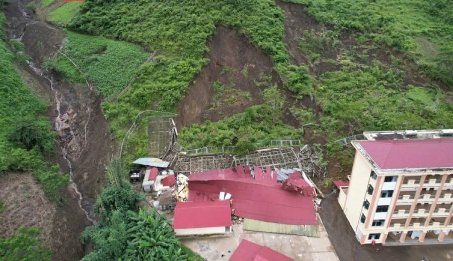| Sau bão số 3, nhiều công trình trường học tại Lào Cai bị vùi lấp, đổ sập. Ảnh: CTTĐTLC |