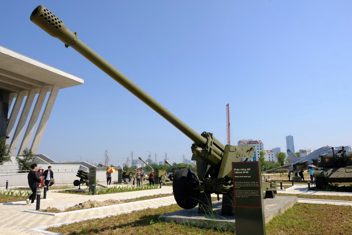 | Pháo nòng dài 130 mm được phía ta sử dụng trong chiến tranh. |